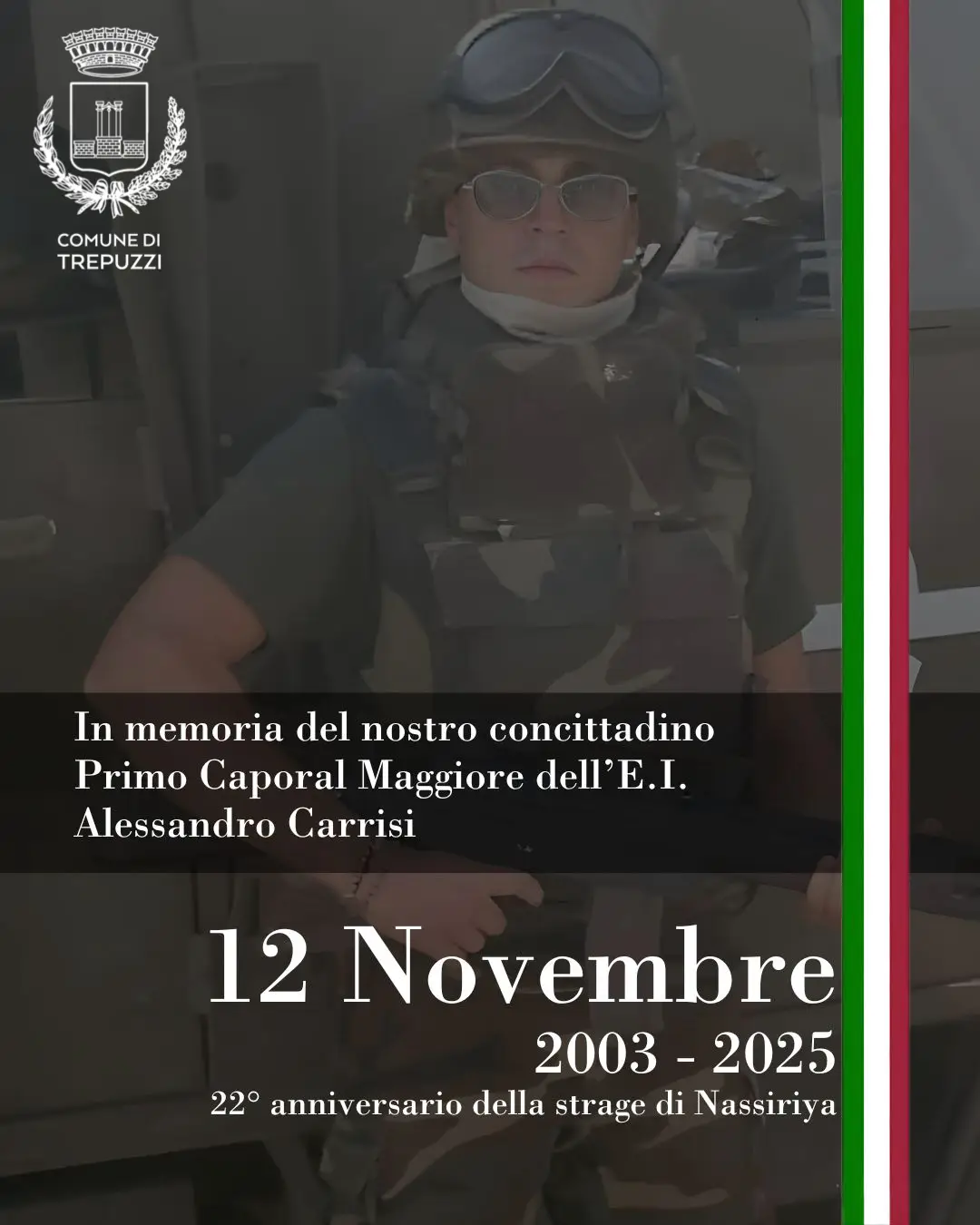 Anniversario della strage di Nassiriya in cui perse la vita il nostro concittadino I Caporal Maggiore dell’Esercito Italiano Alessandro Carrisi